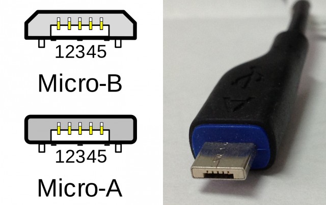 What we commonly refer to as a "Micro USB" port or plug is really a "Micro USB-B" connector. Micro USB-A is a thing, the difference being that Micro USB-B uses the familiar trapezoid shape, while Micro USB-A is rectangle shaped. The Mi4 has a Micro USB A/B port, which accepts both connectors, and it ships with a Micro USB-B plug.