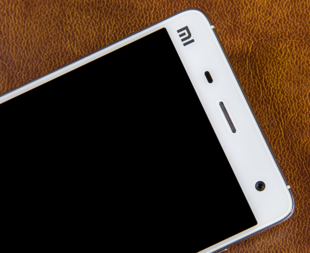 The top half of the Mi4 houses Xiaomi's "Mi" logo, brightness and proximity sensors, an earpiece, and a massive 8MP front-facing camera.